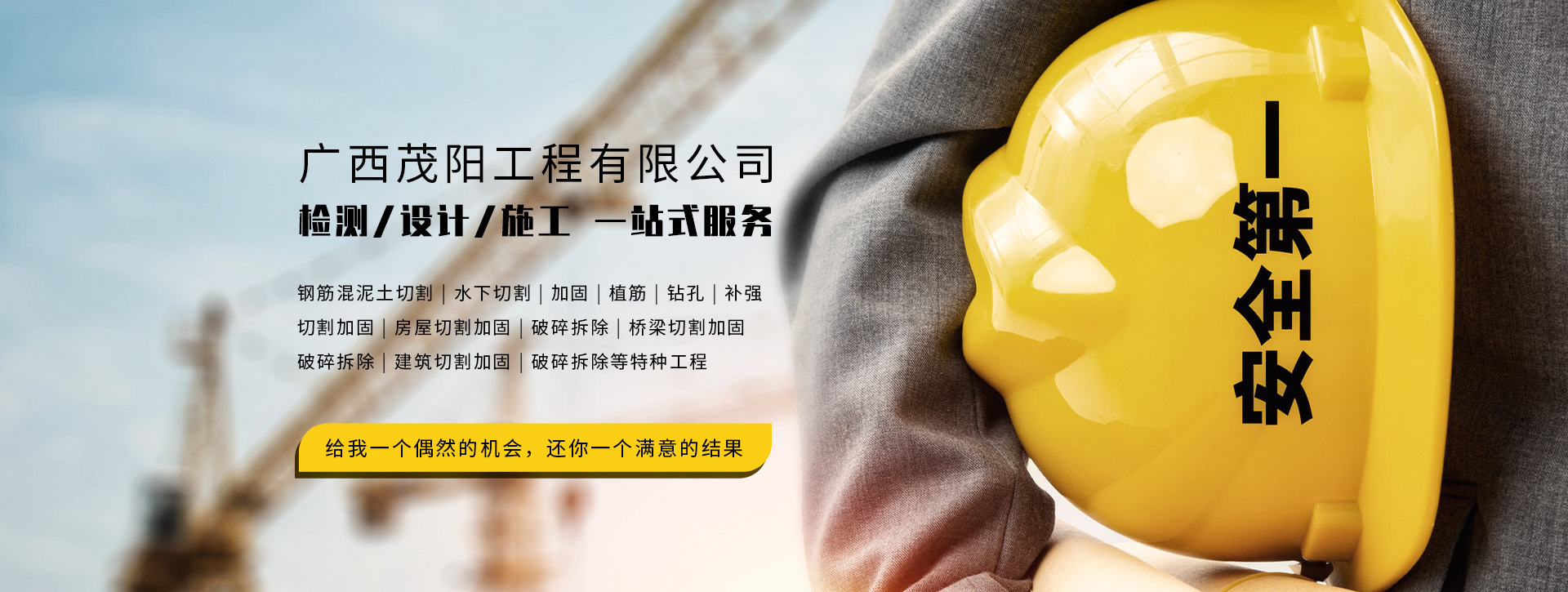 • 廣西茂陽工程有限公司,是一家鋼筋混泥土切割,水下切割、加固、植筋、鉆孔、補(bǔ)強(qiáng)、切割加固、房屋切割加固/破碎拆除、橋梁切割加固/破碎拆除、建筑切割加固/破碎拆除等特種工程的施工隊(duì)伍